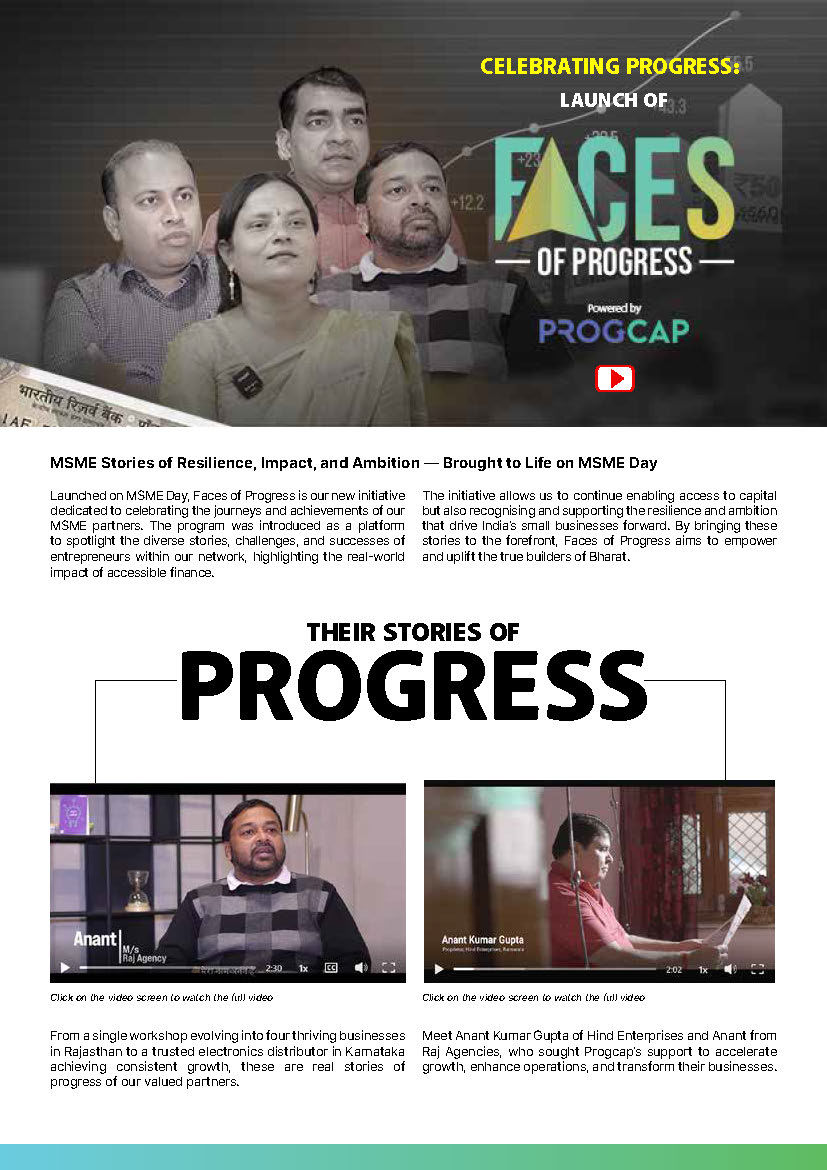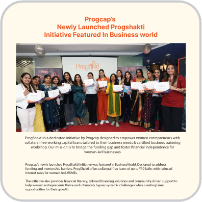 Progcap closed H1 FY24 with exceptional momentum, reinforcing its position as a trusted, and innovation-led fintech for India’s MSMEs. Backed by national recognition, global platform participation, and solutions like B2BProg. Progcap worked with a focused push into underserved markets—enabling MSMEs to scale during their most critical business cycles.